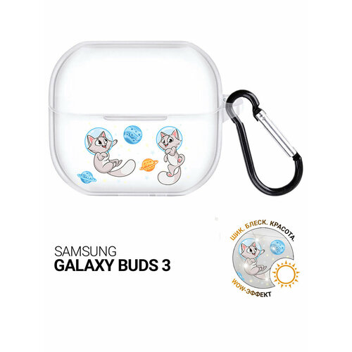 Чехол на Samsung Galaxy Buds 3 с принтом "CosmoCats" прозрачный