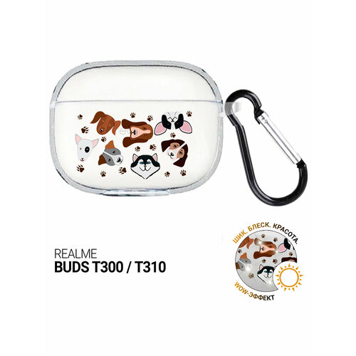 Чехол на Realme Buds T300 / T310 с принтом "Dogs Pattern" прозрачный