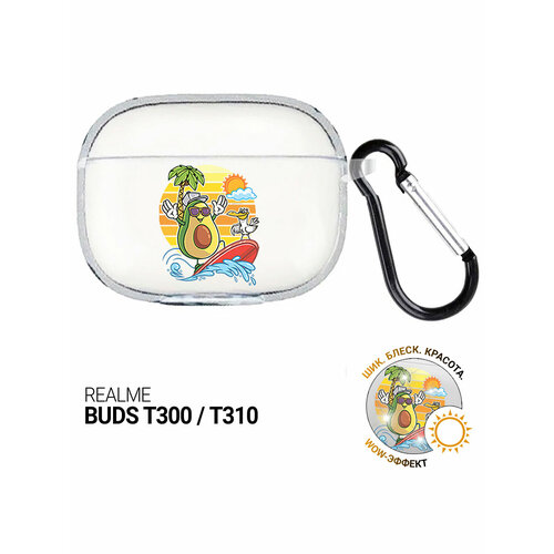 Чехол на Realme Buds T300 / T310 с принтом "Avocado Surfer" прозрачный