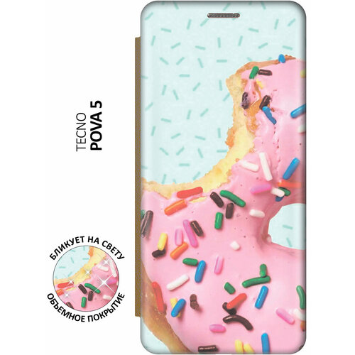 Чехол-книжка Вкусный пончик на Tecno Pova 5 / Техно пова 5 с эффектом блика золотой
