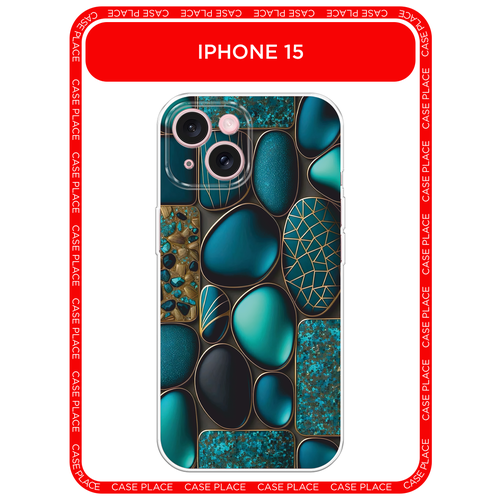 Чехол на Apple iPhone 15 / Айфон 15 с принтом Бирюзовые камни