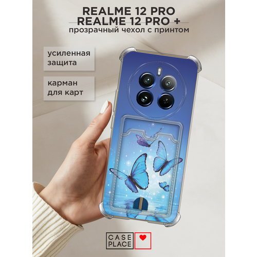 Чехол на Realme 12 Pro/Realme 12 Pro+ (Реалми 12 Про/Реалми 12 Про Плюс) с картой и принтом Бабочка