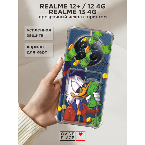 Чехол на Realme 12+/12 4G/13 4G (Реалми 12 Плюс/12 4G/13 4G) с картой и принтом Скрудж Макдак