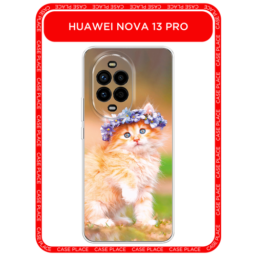 Чехол на Huawei Nova 13 Pro / Хуавей Нова 13 Про с принтом Рыжий кот в венке