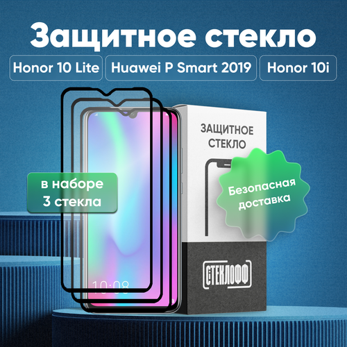 Набор защитных стекол для Huawei Honor 10 Lite / P Smart 2019 и Honor 10i c полным покрытием, серия Стеклофф Base, 3 шт