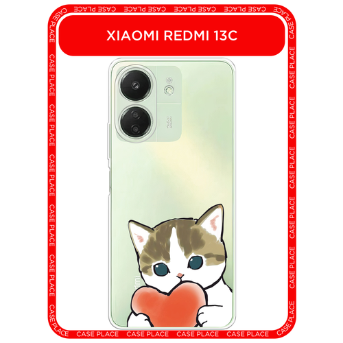 Чехол на Xiaomi Redmi 13C/Poco C65 / Сяоми Редми 13C/Поко С65 с принтом Котик с сердечком, прозрачный