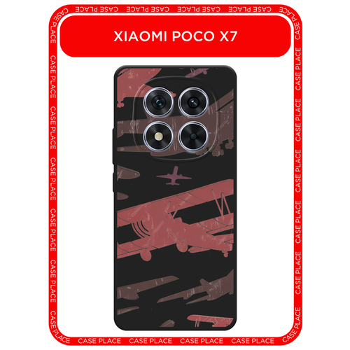 Черный матовый чехол на Poco X7/Xiaomi Redmi Note 14 Pro 5G / Поко X7 с принтом Самолёты паттерн 2