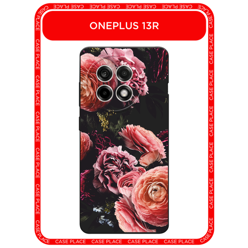 Черный матовый чехол на Oneplus 13R/Ace 5/5 Pro / Ван Плас 13R/Асе 5/5 Про с принтом Нежно-розовые розы 2