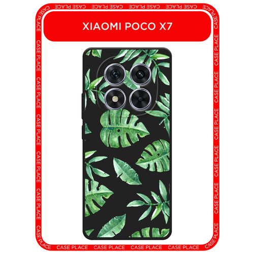 Черный матовый чехол на Poco X7/Xiaomi Redmi Note 14 Pro 5G / Поко X7 с принтом Нарисованные пальмовые листья