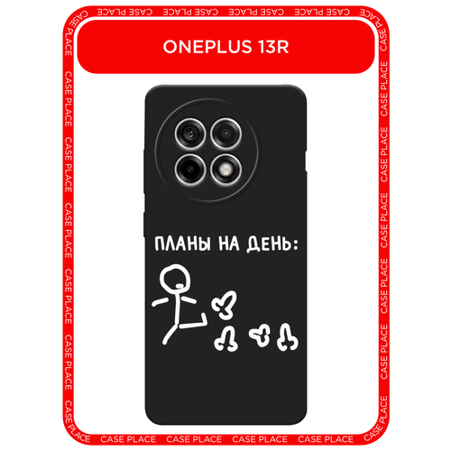 Черный матовый чехол на Oneplus 13R/Ace 5/5 Pro / Ван Плас 13R/Асе 5/5 Про с принтом План на день белый