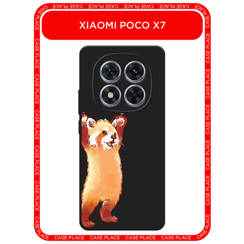 Черный матовый чехол на Poco X7/Xiaomi Redmi Note 14 Pro 5G / Поко X7 с принтом Красная панда в полный рост