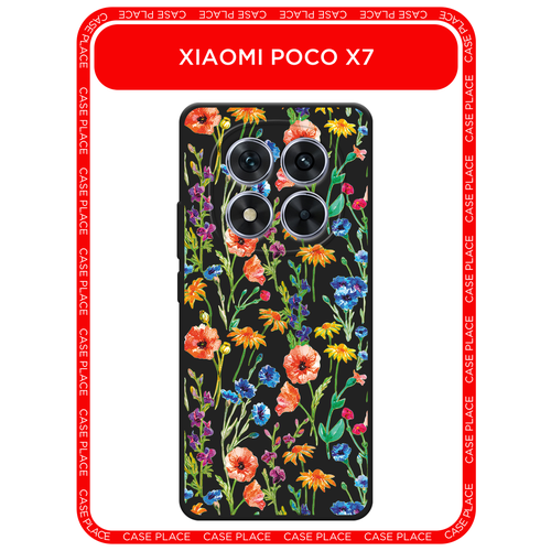 Черный матовый чехол на Poco X7/Xiaomi Redmi Note 14 Pro 5G / Поко X7 с принтом Маки и васильки фон