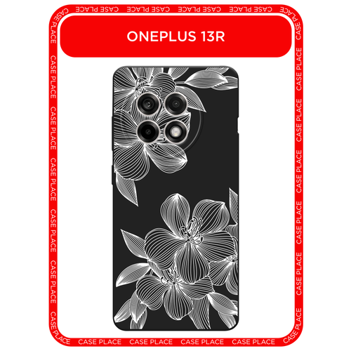 Черный матовый чехол на Oneplus 13R/Ace 5/5 Pro / Ван Плас 13R/Асе 5/5 Про с принтом Крокус