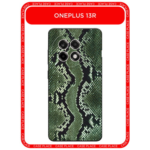 Черный матовый чехол на Oneplus 13R/Ace 5/5 Pro / Ван Плас 13R/Асе 5/5 Про с принтом Кожа зелёной змеи