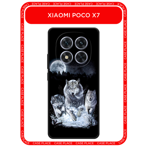 Черный матовый чехол на Poco X7/Xiaomi Redmi Note 14 Pro 5G / Поко X7 с принтом Стая волков под луной