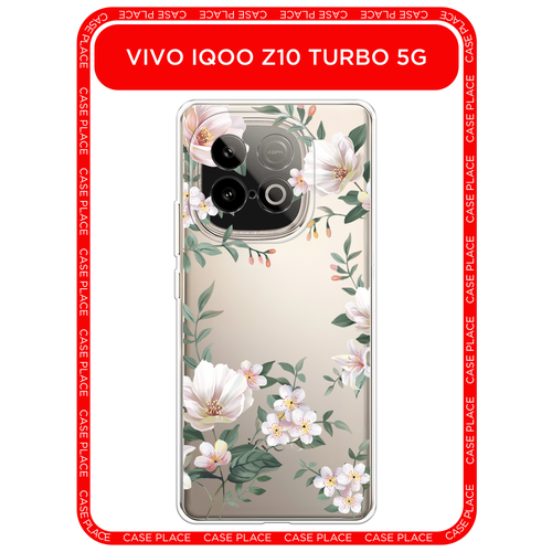 Чехол на Vivo IQOO Z10 Turbo 5G/Z10 Turbo Pro 5G / Виво IQOO Z10 Турбо 5G/Z10 Турбо Про 5G с принтом Beautiful white flowers, прозрачный