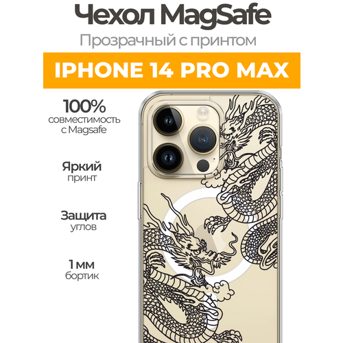 Чехол на Айфон 14 Про Макс MagSafe с магнитом с принтом "Два китайских дракона"