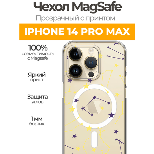 Чехол на Айфон 14 Про Макс (Apple iPhone 14 Pro Max) MagSafe с магнитом и принтом "Карта звёздного неба рисунок"