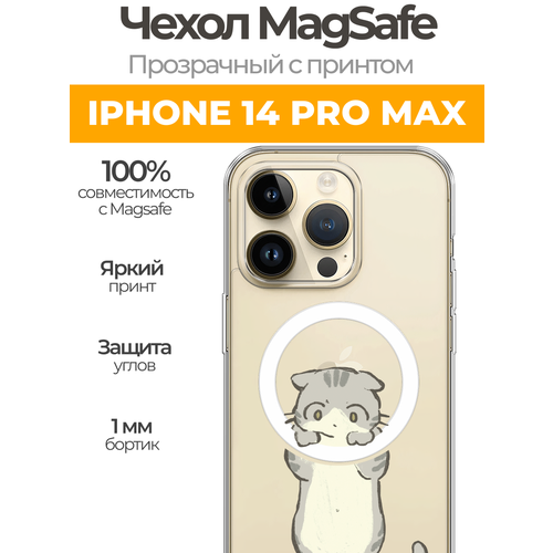 Чехол на Айфон 14 Про Макс MagSafe с магнитом с принтом "Висящий котик"