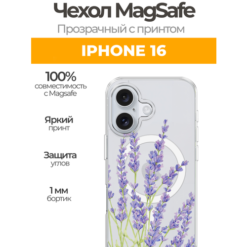Чехол на Айфон 16 MagSafe с магнитом с принтом "Лавандовые стебли"