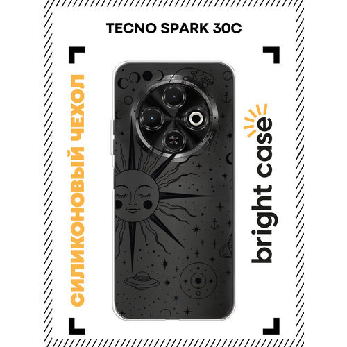 Чехол на Tecno Spark 30C / Текно Спарк 30C с принтом Солнце и узоры, прозрачный