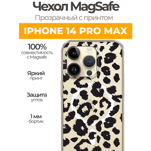 Чехол на Айфон 14 Про Макс MagSafe с магнитом с принтом "Окрас леопарда фон"