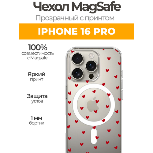 Чехол на Айфон 16 Про MagSafe с магнитом с принтом "Red hearts"