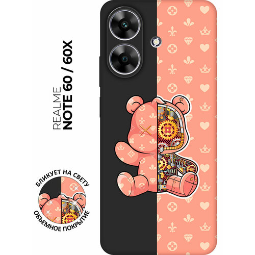 Силиконовый чехол на Realme Note 60 / 60x с принтом "Персиковый Мишка" матовый черный
