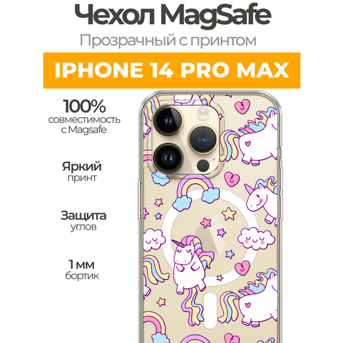 Чехол на Айфон 14 Про Макс MagSafe с магнитом с принтом "Sweet unicorns dreams"