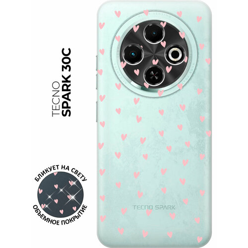 Силиконовый чехол на Tecno Spark 30C с принтом "Розовые сердечки" прозрачный