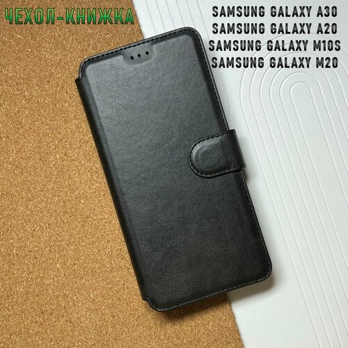 Чехол книжка для Samsung Galaxy A30 / A20 / M10s / M20 кожаный с магнитной застежкой / Самсунг Галакси А30, А20, М10с, М20 с хлястиком, с функцией подставки