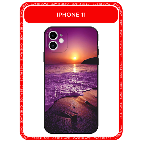Черный матовый чехол на Apple iPhone 11 / Айфон 11 с принтом Закат на пляже