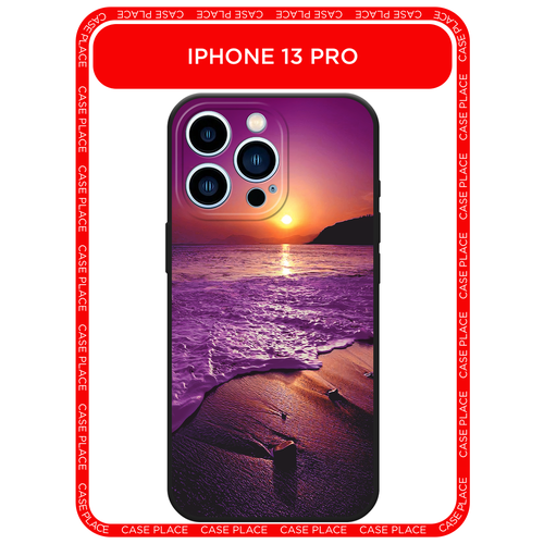Черный матовый чехол на Apple iPhone 13 Pro / Айфон 13 Про с принтом Закат на пляже