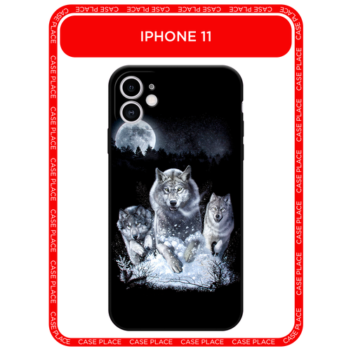 Черный матовый чехол на Apple iPhone 11 / Айфон 11 с принтом Стая волков под луной