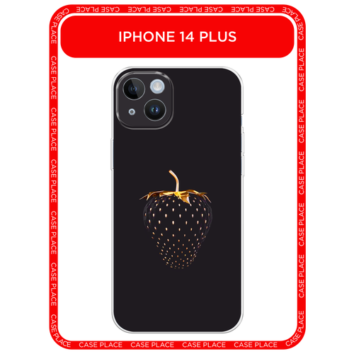 Чехол на Apple iPhone 14 Plus / Айфон 14 Плюс с принтом Черно-золотая клубника