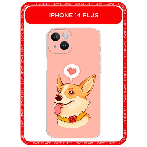 Чехол на Apple iPhone 14 Plus / Айфон 14 Плюс с принтом Корги язык