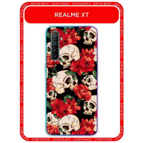 Чехол на Realme XT / Реалми XT с принтом Черепа с цветами
