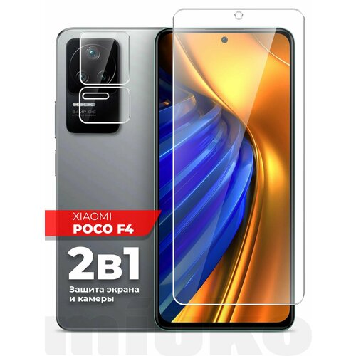 Защитное стекло для Xiaomi Poco F4 (Ксиоми Поко Ф4) на Экран и Камеру, (гибридное: пленка+стекловолокно), прозрачное силиконовая клеевая основа тонкое Hybrid Glass, Miuko