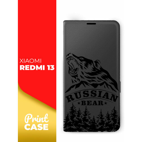 Чехол на Xiaomi Redmi 13 (Ксиоми Редми 13) книжка эко-кожа с функцией подставки отделением для пластиковых карт и магнитами Book case, Miuko (принт) Russian Bear