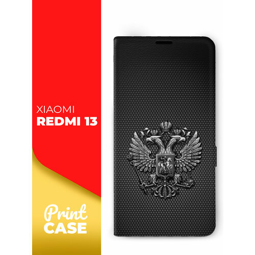 Чехол на Xiaomi Redmi 13 (Ксиоми Редми 13) книжка эко-кожа с функцией подставки отделением для пластиковых карт и магнитами Book case, Miuko (принт) Герб карбон