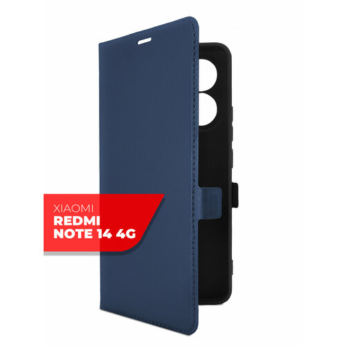 Чехол на Xiaomi Redmi Note 14 4G синий книжка эко-кожа с функцией подставки отделением для пластиковых карт и магнитами Book case, Miuko