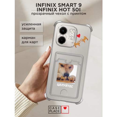 Чехол на Infinix Smart 9/Hot 50i (Инфиникс Смарт 9/Хот 50i) с картой и принтом Целуйтес мем