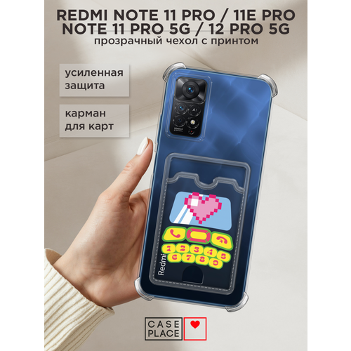 Чехол на Xiaomi Redmi Note 11 Pro/11 Pro 5G/11E Pro/12 Pro 4G (Редми Нот 11 Про/11 Про 5G/11E Про/12 Про) с картой и принтом Пиксельное сердечко