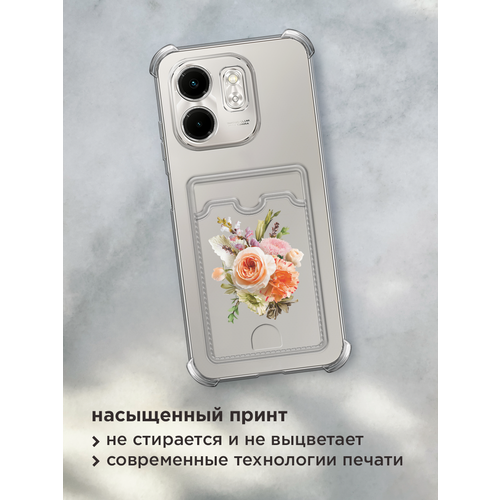 Чехол на Infinix Smart 9/Hot 50i (Инфиникс Смарт 9/Хот 50i) с картой и принтом Нежный букет