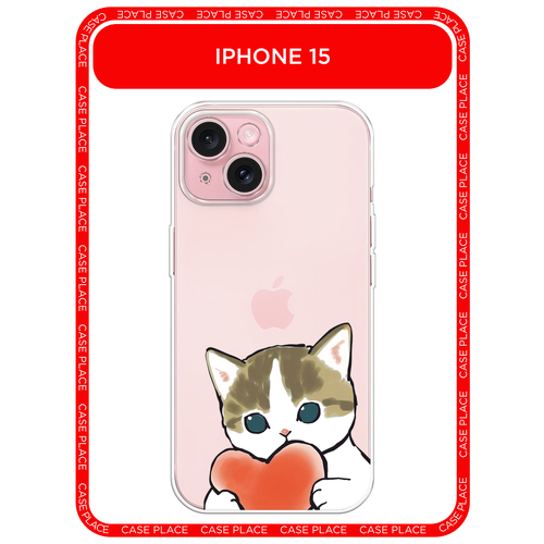Чехол на Apple iPhone 15 / Айфон 15 с принтом Котик с сердечком, прозрачный