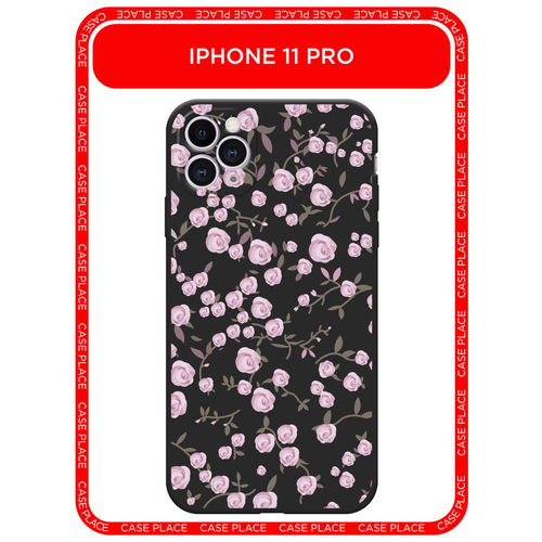 Черный матовый чехол на Apple iPhone 11 Pro / Айфон 11 Про с принтом Нежно-розовые розы 2