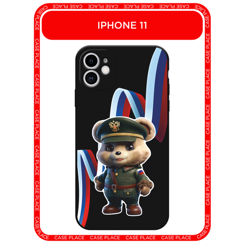 Черный матовый чехол на Apple iPhone 11 / Айфон 11 с принтом Мишка в форме 4