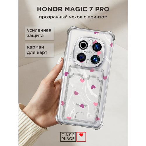 Чехол на Honor Magic 7 Pro (Хонор Мэджик 7 Про) с картой и принтом Фиолетовые и розовые сердечки