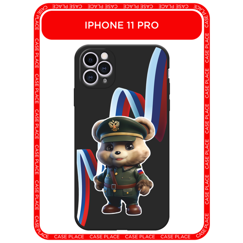 Черный матовый чехол на Apple iPhone 11 Pro / Айфон 11 Про с принтом Мишка в форме 4