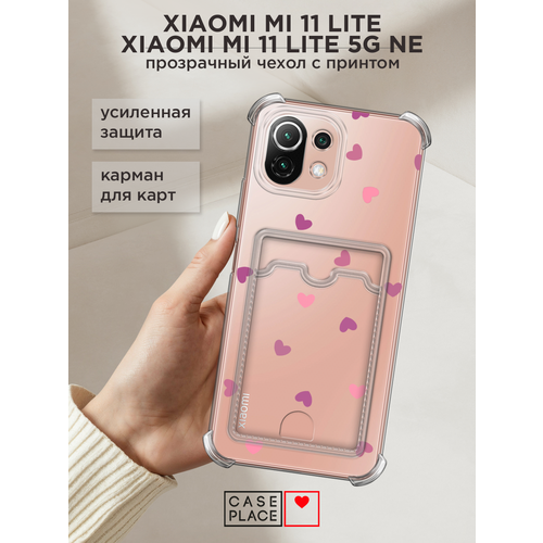 Чехол на Xiaomi Mi 11 Lite/5G NE (Сяоми Ми 11 Лайт/5G NE) с картой и принтом Фиолетовые и розовые сердечки
